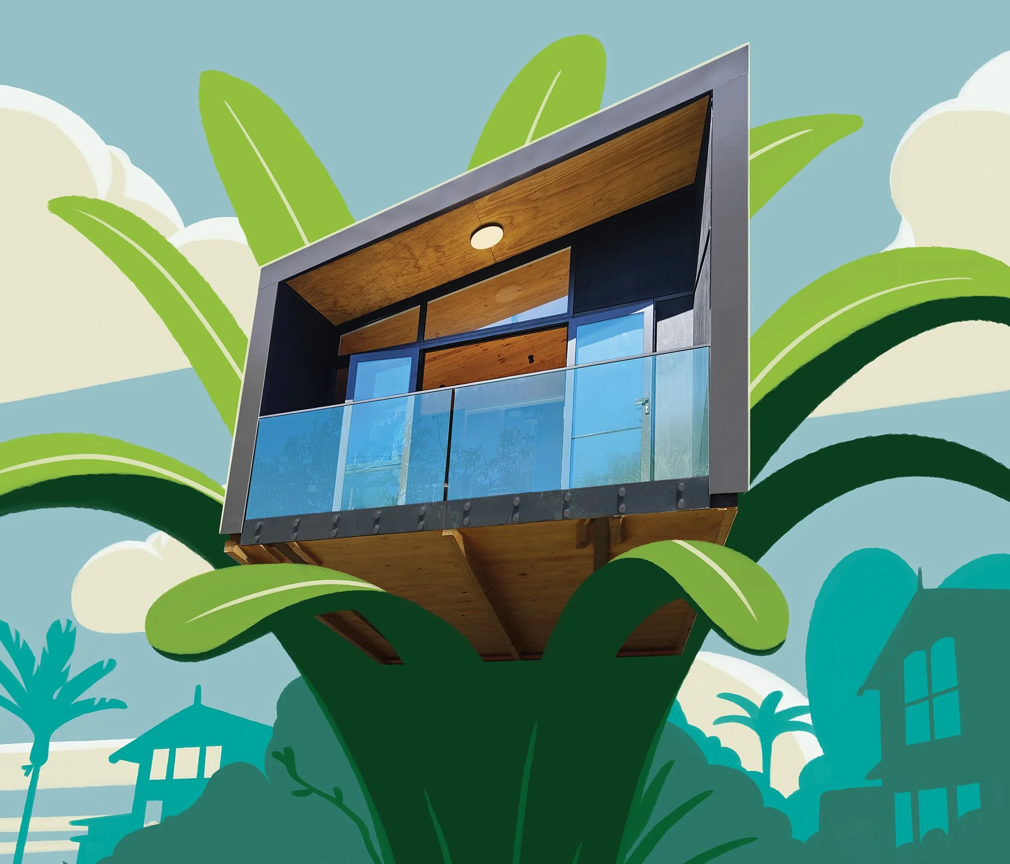 Te Whare Iti Modular Homes approached us to create a different kind of housing campaign. The brief was “slightly surrealist, objects in unexpected spaces…a very fun and quirky vibe to show our modular houses being seen in unexpected ways.”